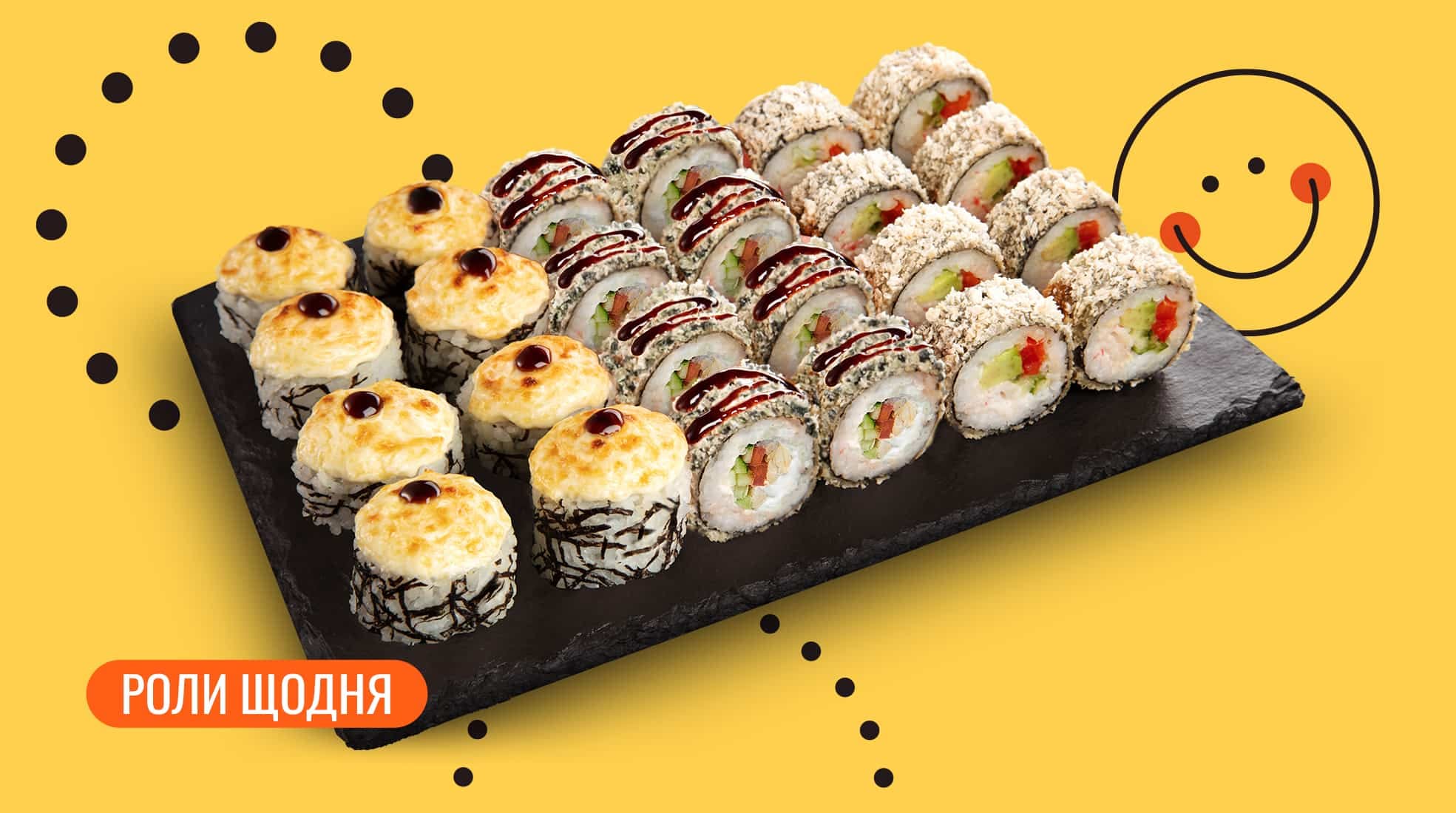 Склад: Каліфорнія темпура, Темпура рол з куркою, Ніжний з куркою. Соєвий соус – 80 мл (2 шт). Імбир – 20 г. Васабі – 10 г.