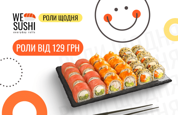 Великий вибір, доступні ціни, завжди свіжі продукти - роли від 129 грн у WE SUSHI.